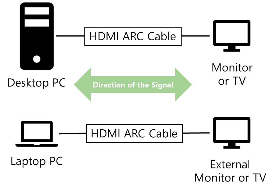 즉, HDMI ARC는 두 기기를 동일한 규격의 HDMI 케이블을 사용하여 TV의 오디오를 사운드바 또는 AV 리시버와 같은 오디오 출력 기기로 다시 보내도록 설계되었다.