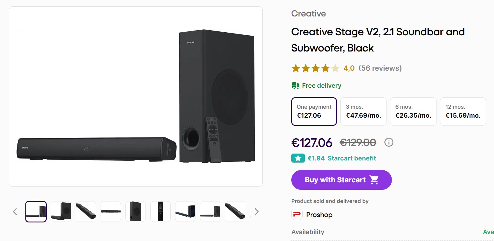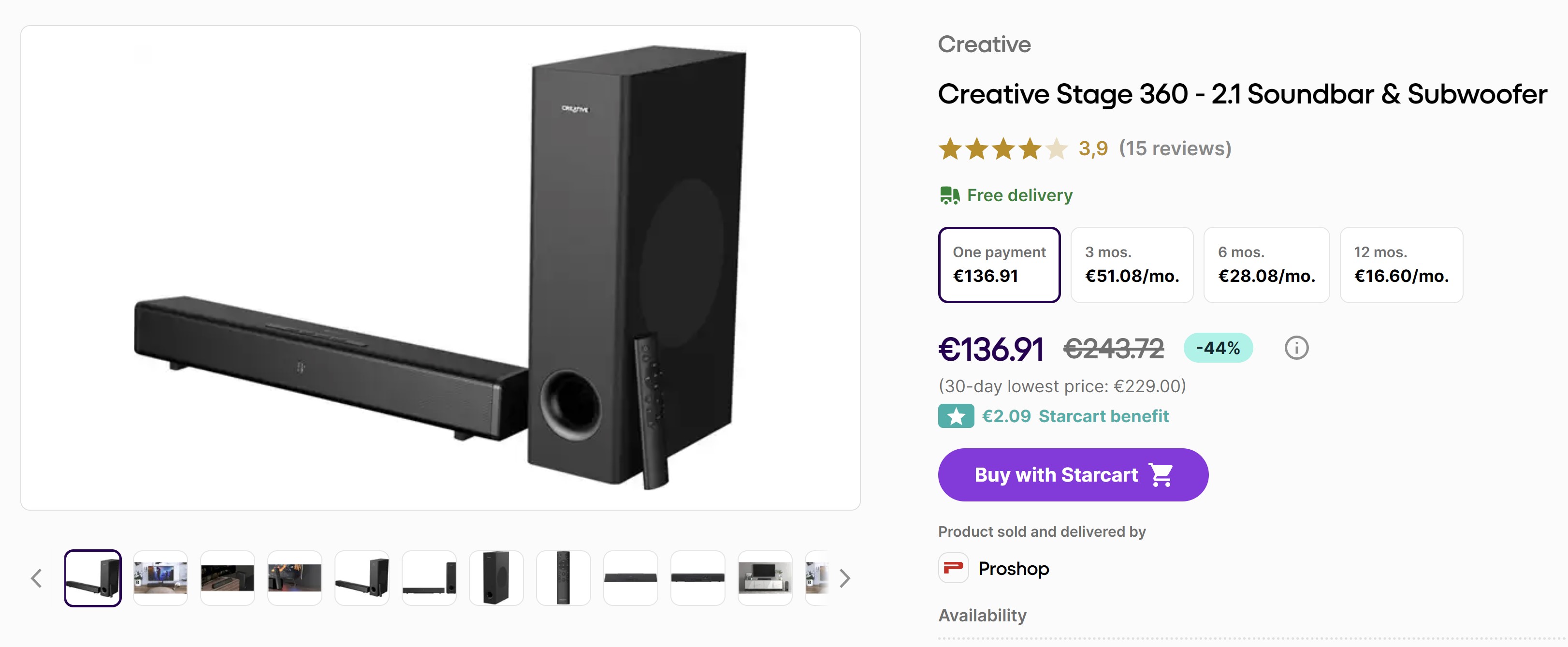 At a relatively low price of €127, I was about to decide on this one, but then I realized that it had an HDMI ARC port, USB port, optical input, and AUX, so I started searching again because I was limited to USB and AUX to connect to my laptop. That was pretty much what I was looking for.