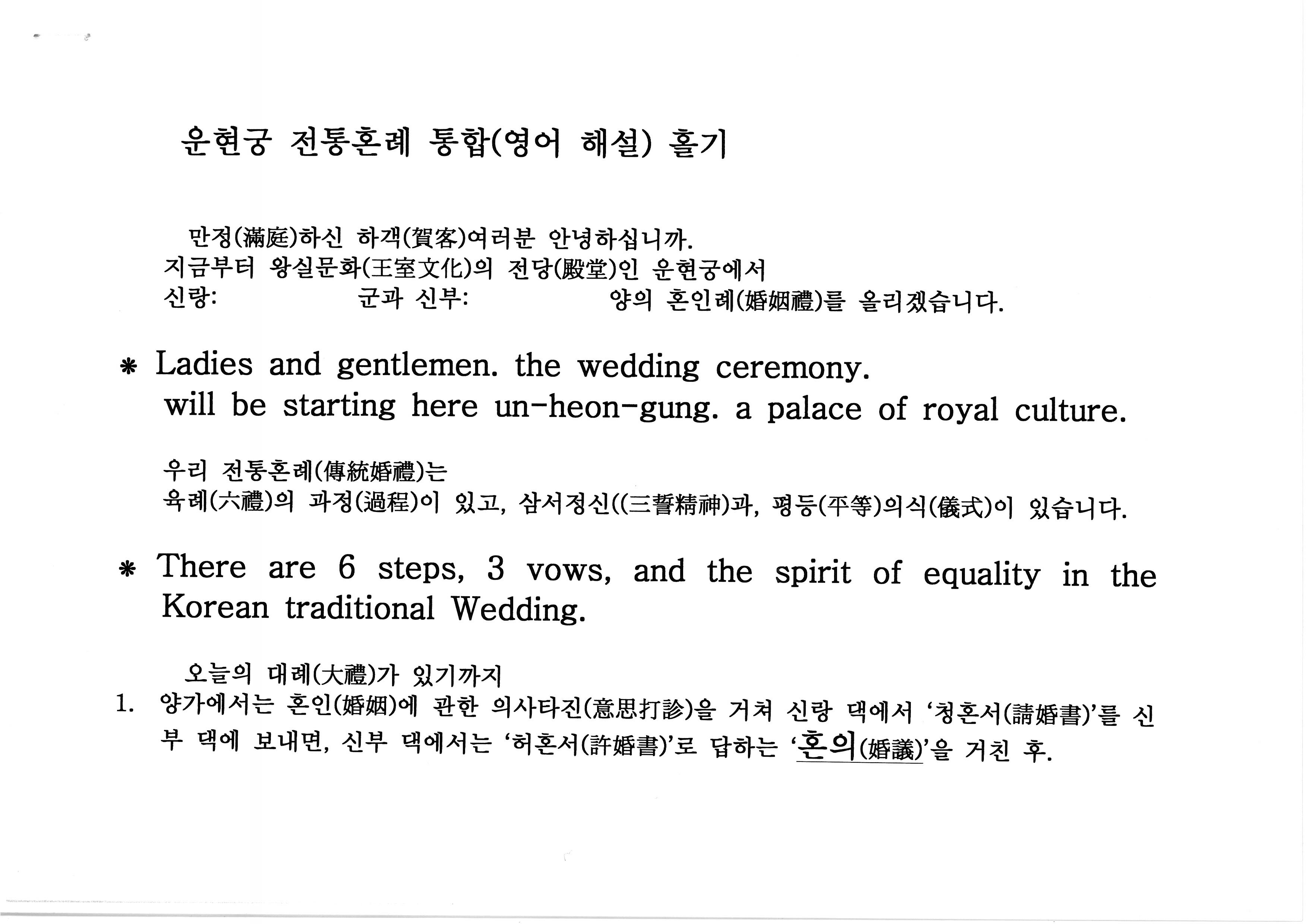 운현궁에서 외국인과 전통혼례를 하시는 분들께 참고가 되기를 바랍니다.