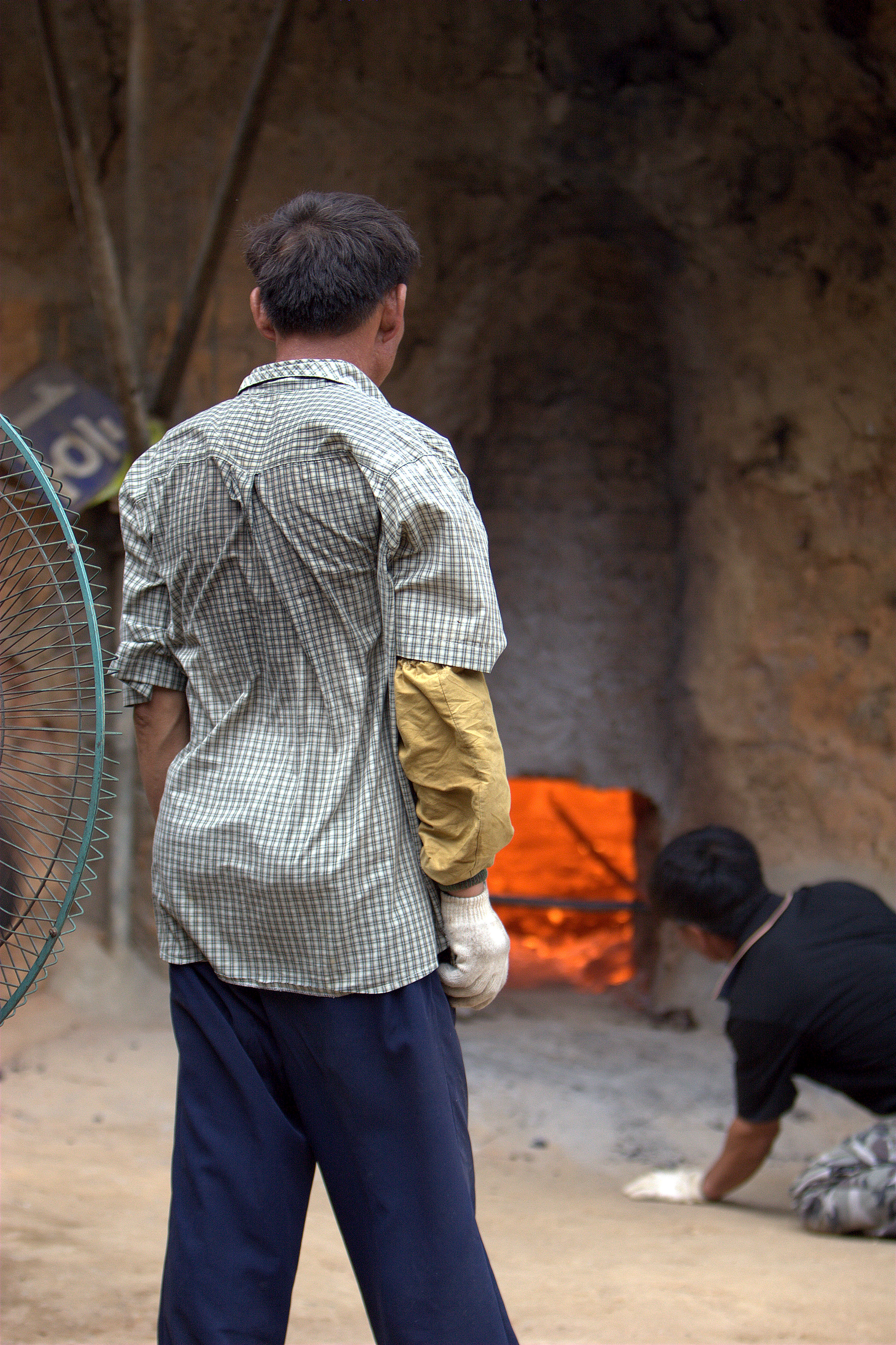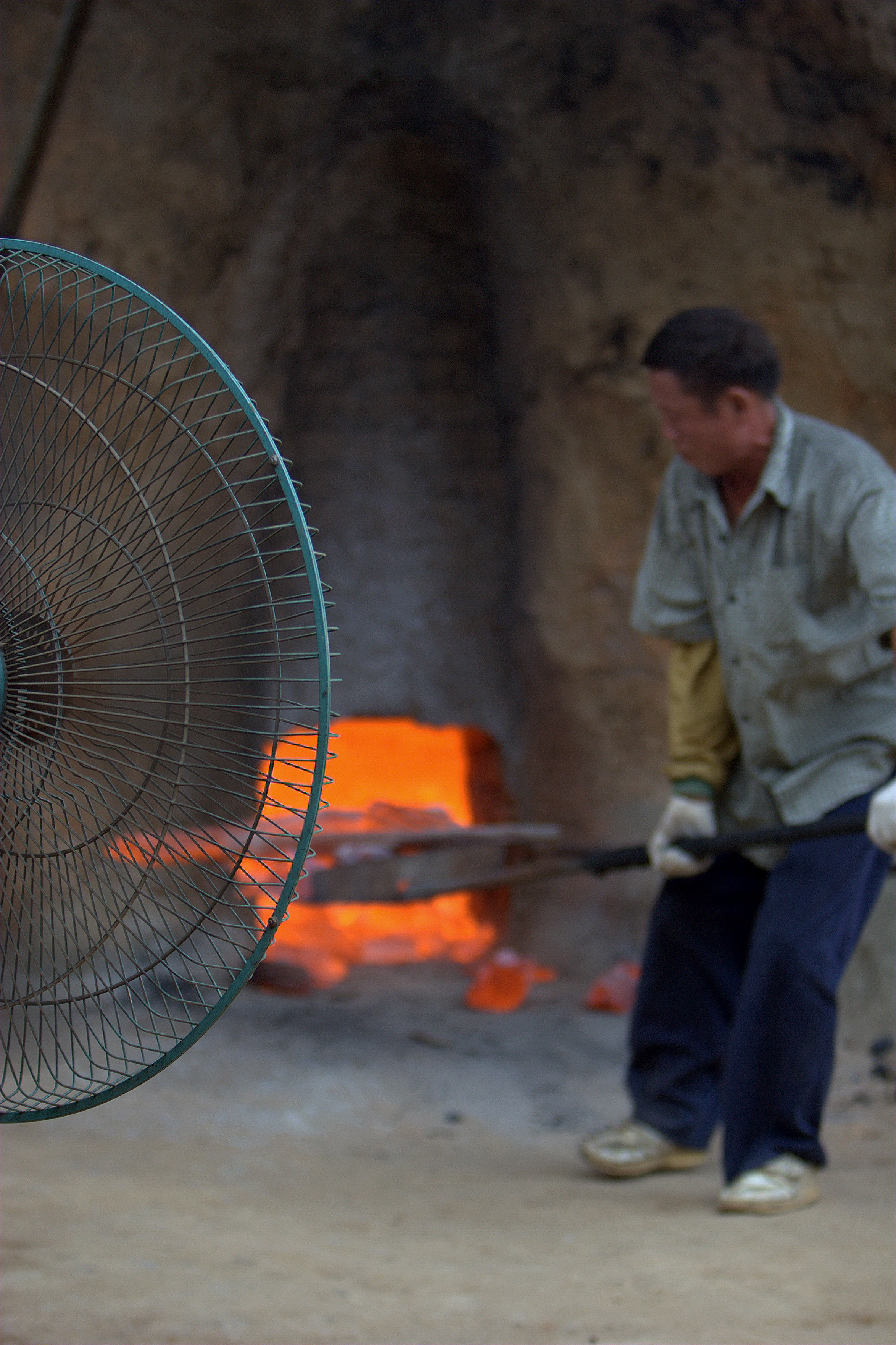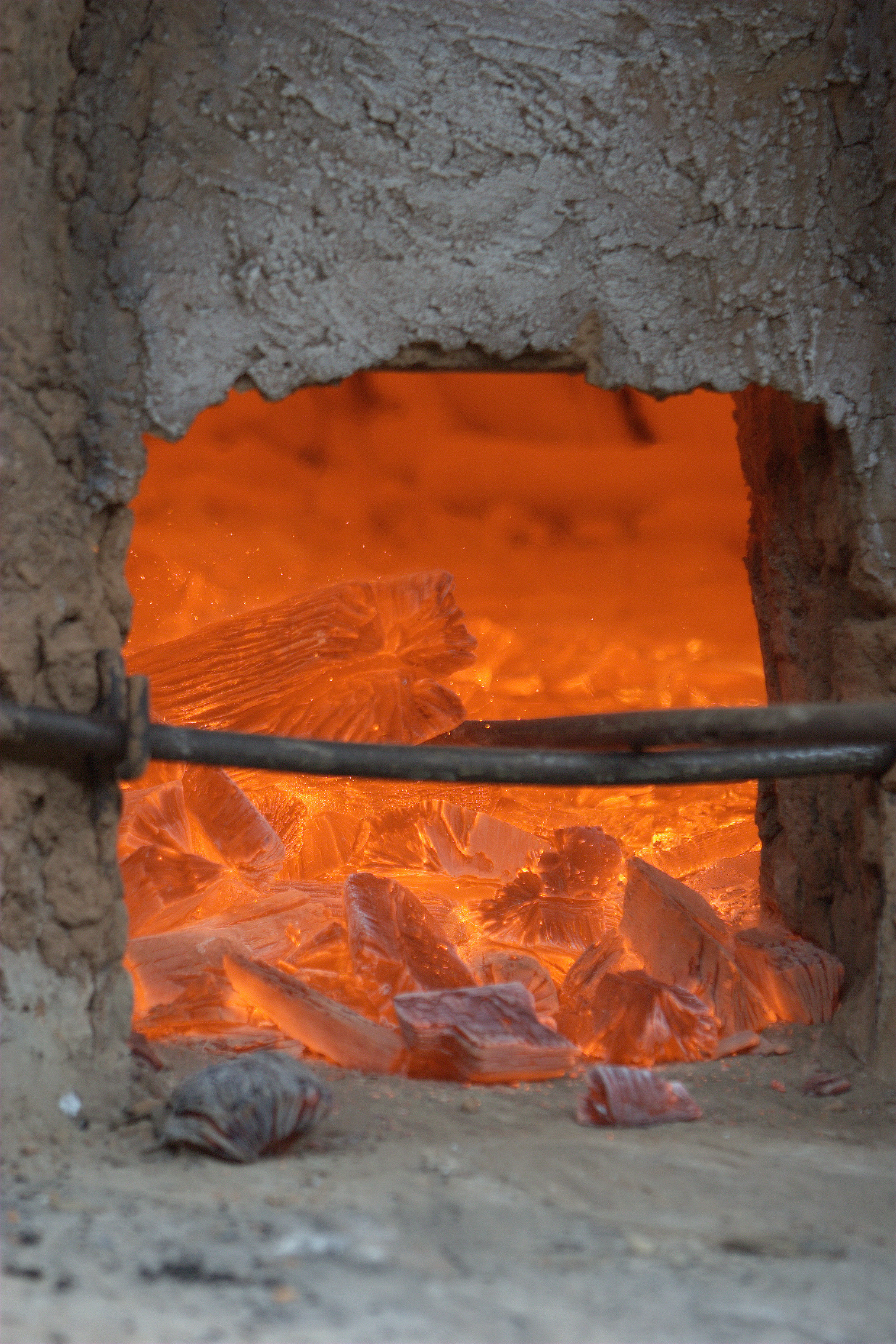 가마에 참나무를 넣고 진흙으로 입구를 막습니다. 연재질의 나무는 타서 재가 되지만 참나무를 사용하면 재가 되지 않고 탄화됩니다. 이때 가마의 온도는 수백도(600~800℃)를 넘습니다.