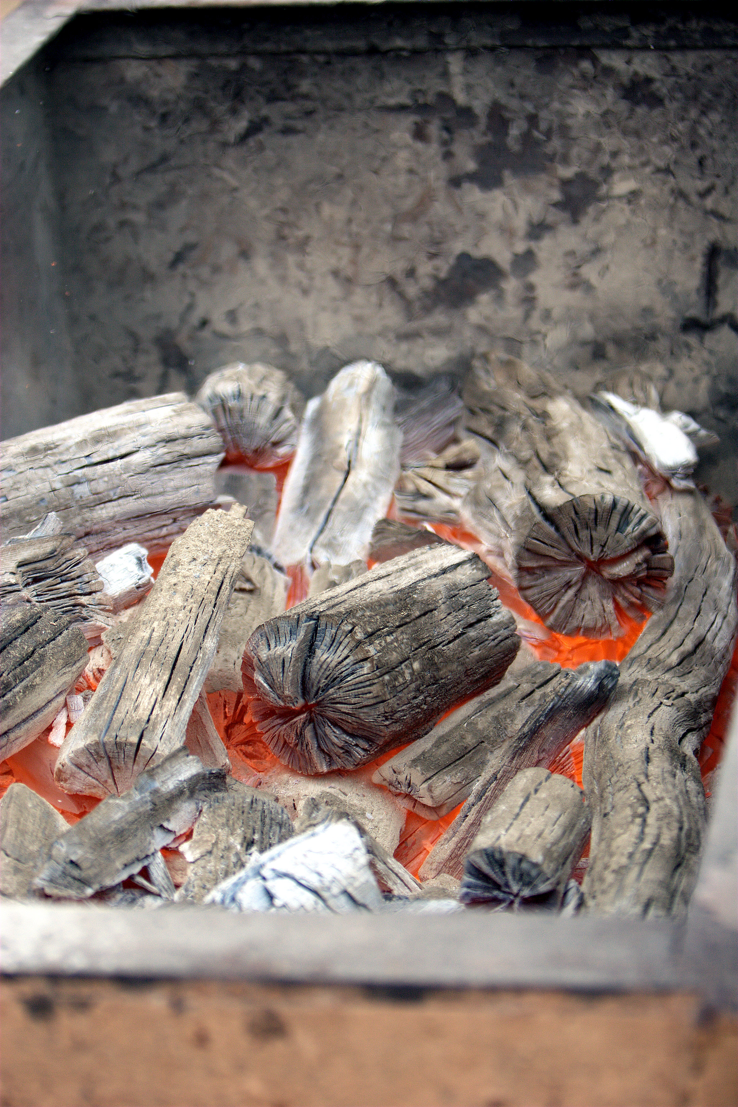 한국에서는 일반적으로 참나무로 숯을 만드는데, 우리는 이것을 참숯이라고 부릅니다. 참숯은 공장에서 톱밥으로 만드는 숯이 아닌 수작업으로 만드는 숯입니다.