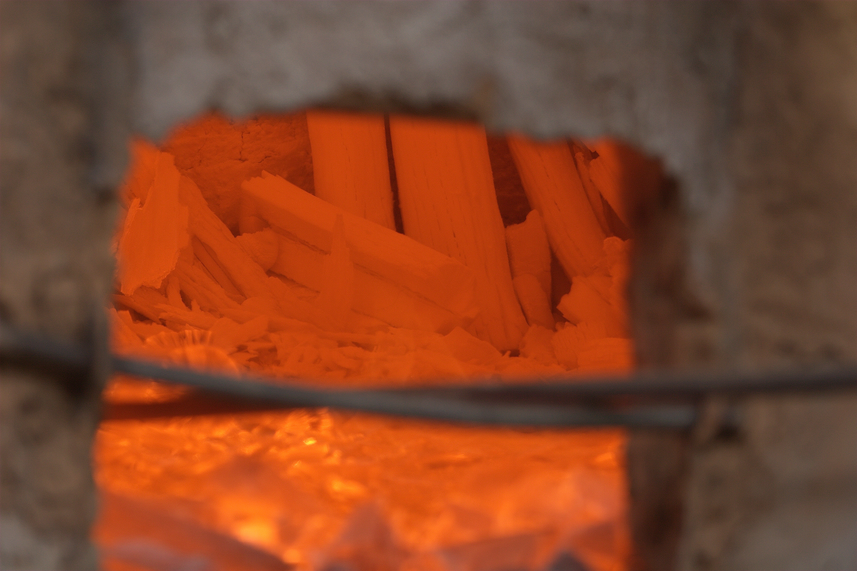Put the oak in the kiln and block the entrance with mud. Softwood is burned to ashes, but if oak is used, it will not become ashes but will be carbonized. At this time, the temperature of the kiln exceeds several hundred degrees(600~800℃).
