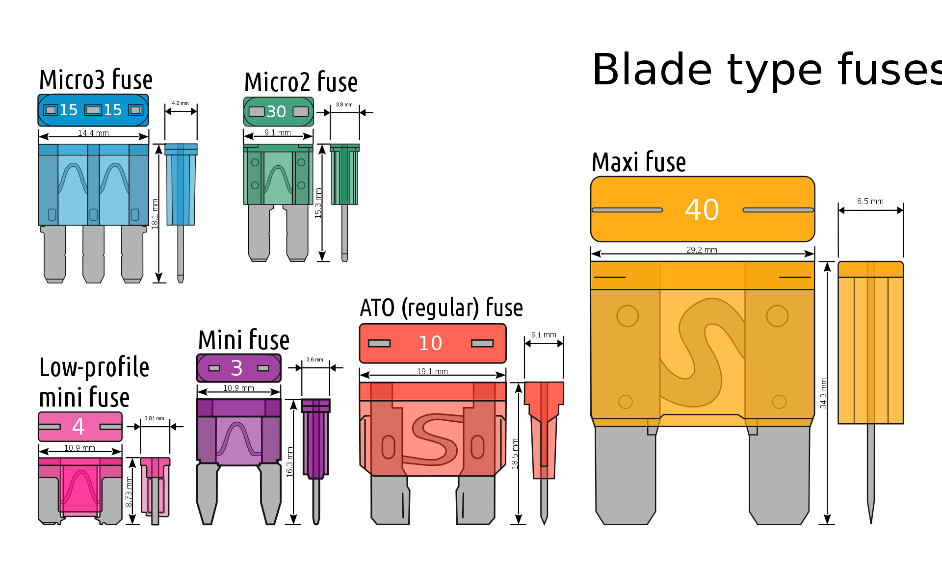 For reference, the type of fuse used in the indoor fuse box is a low-profile mini fuse.