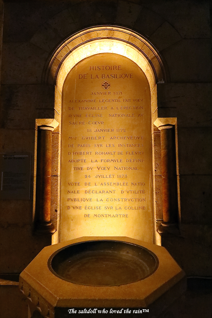 | JANVIER 1871 ALEXANDRE LEGENTIL FAIT VOEV DE TRAVAILLER A L'ERECTION D'VNE ÉGLISE SACRE-COEVR NATIONALE AV 18 JANVIER 1872 MGR GVIBERT ARCHEVEQVE DE PARIS SVR LES INSTANCES D'HVBERT ROHAVLT DE FLEVRY ADOPTE LA FORMVLE DEFINI- TIVE DV VOEV NATIONAL 24 JVILLET 1873 24 JVILLET 1873 VOTE DE L'ASSEMBLEE NATIO NALE DÉCLARANT D'UTILITÉ PVBLIQVE LA CONSTRUCTION D'VNE ÉGLISE SVR LA COLLINE DE MONTMARTRE |