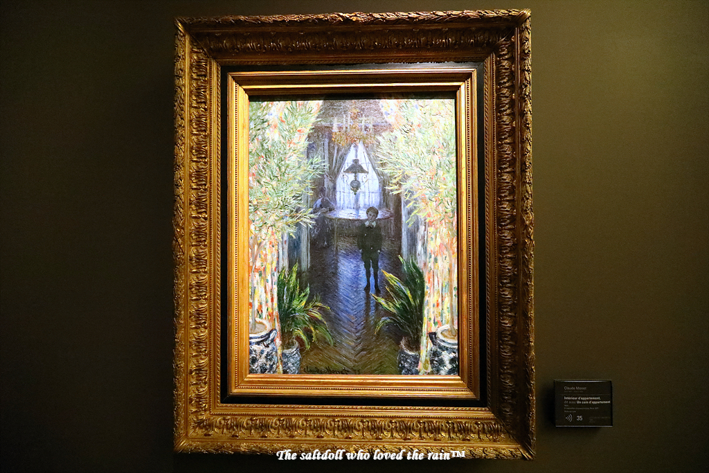 From 1871, when he returned from England, until 1878, Monet lived in the commune of Argenteuil near Paris. During this period he often featured his wife Camille in his paintings, with their eldest son Jean, born in 1867. He is pictured here, inside the sec