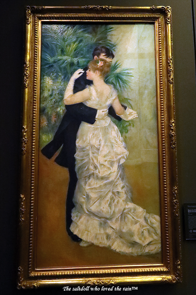 Renoir liked dance scenes. These two paintings were designed as a pair: the format is identical and the almost life-size figures represent two different even opposite aspects of dancing. The elegant restraint of the city dancers and the cool ballroom aroun