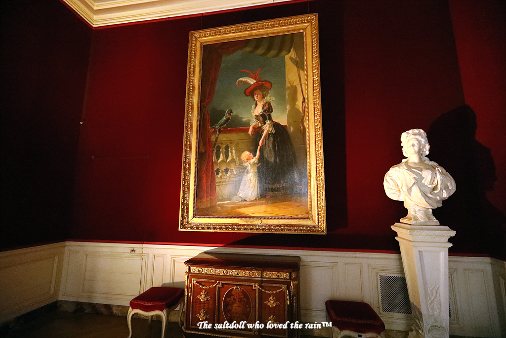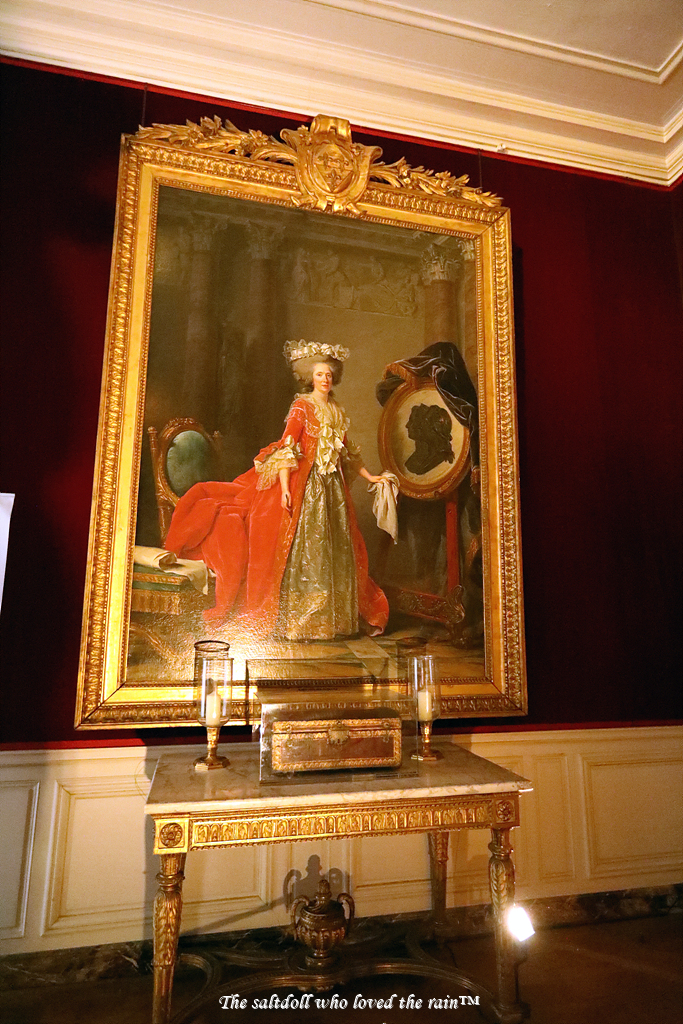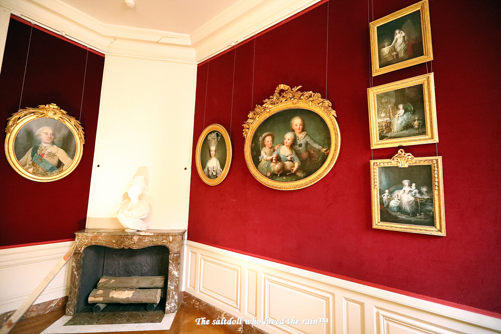 Near the window is a small painting of a moment in the daily lives of Mesdames: Adélaïde is sitting at her desk close to a portrait of Victoire The sisters' mutual affection seems to have been a huge comfort to them during their time at court.
