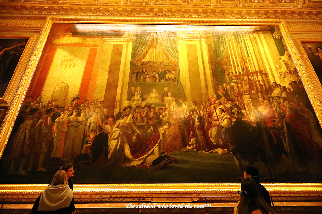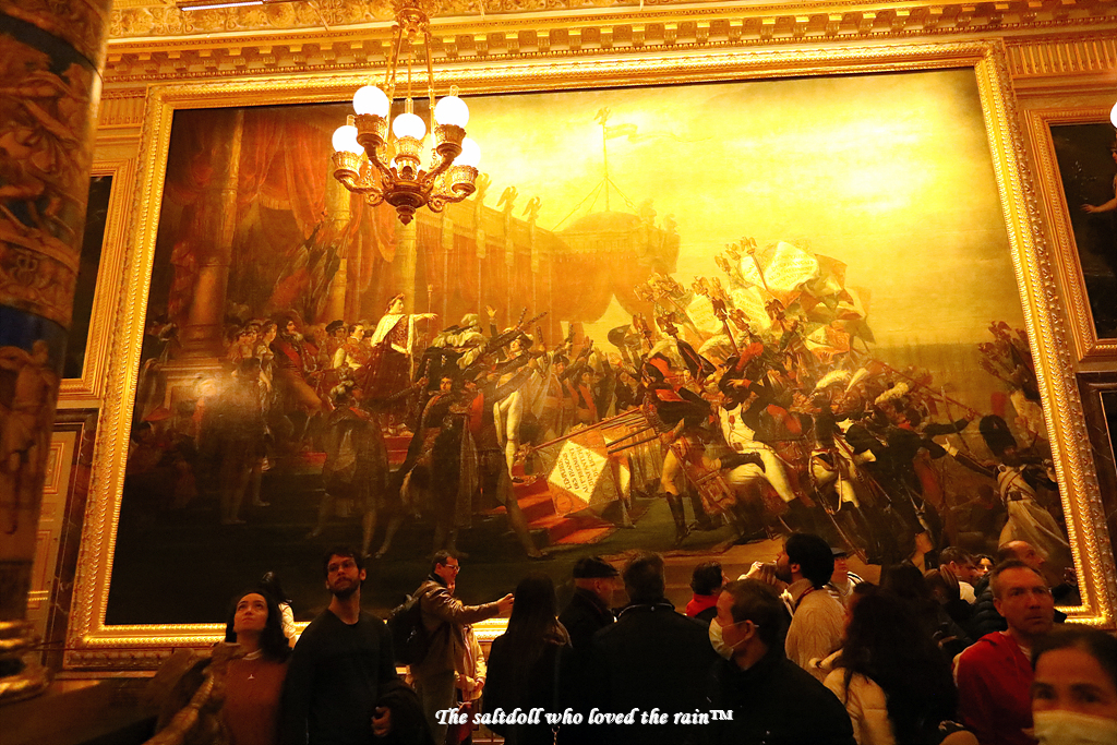 The Coronation, which was located in this room and actually shows the coronation of Empress Josephine, was moved from Versailles to the Louvre in Paris in 1889. It has since been replaced by a second copy that David painted in Paris and then in Brussels in 1808-1822, for a group of American businessmen. The painting was shown across the United States and Europe throughout the 19th century before Versailles acquired it in 1947. It was placed in this room the following year, thus recreating this beautiful space as imagined by Louis-Philippe.