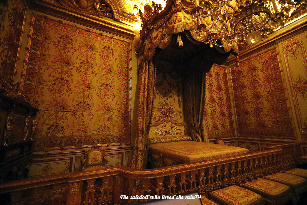 The Bedchamber is the most important room in the apartments and is where the Queen spends most of her time. It was where she slept, often with the king, and in the morning she received guests here during and after her toilette which, like the King’s getting-up ceremony: etiquette controlled every moment of life in the Court… To find out more, was a courtly affair controlled by strict etiquette.