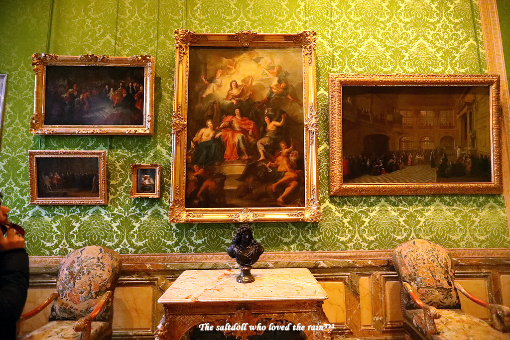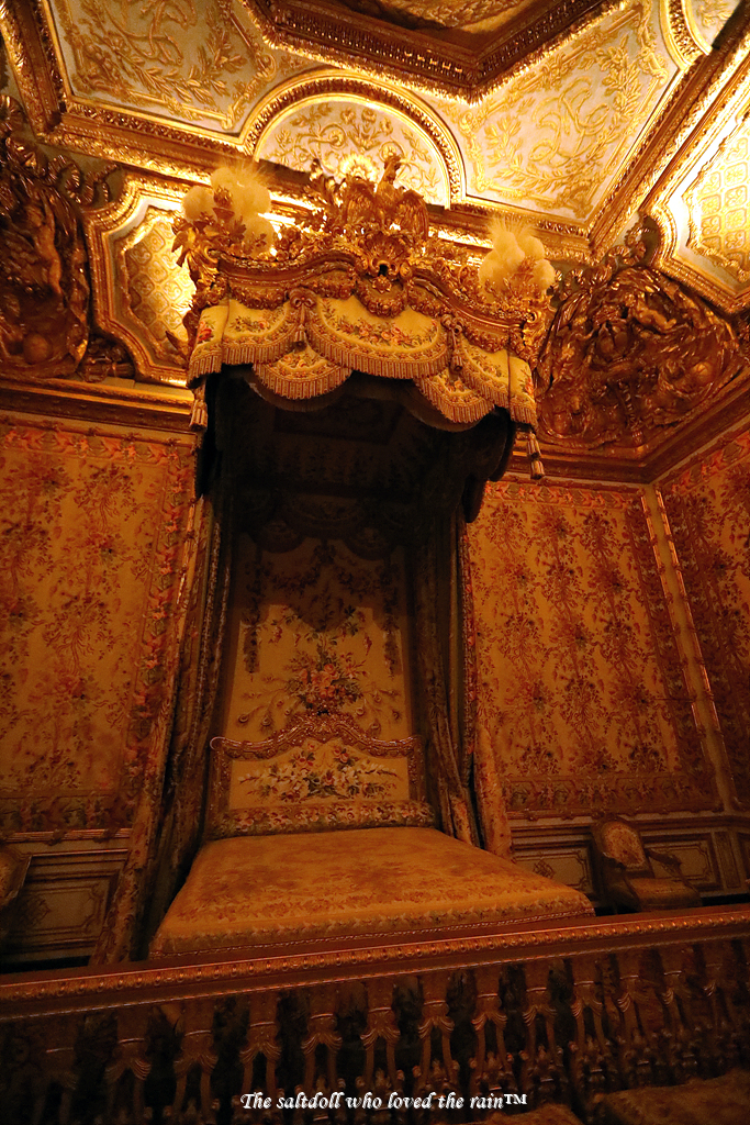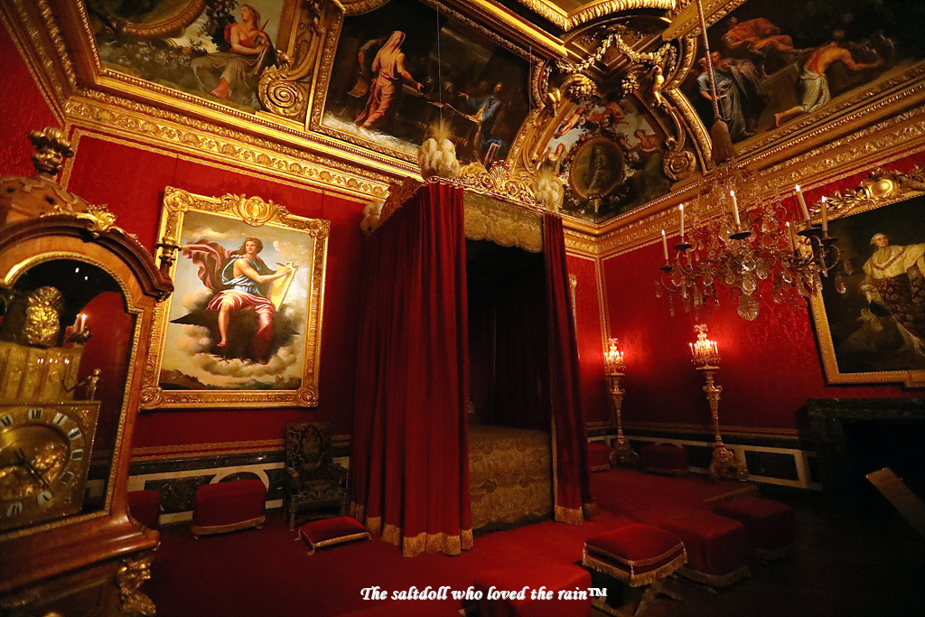 It was also here that the queen gave birth, in public, to the Princes and Princesses of the Realm. The word “public”, however, is misleading, since in reality very few people were admitted to the bed chamber while the queen was giving birth. Only doctors, ladies in waiting, the governess of the Princes and Princesses of the Realm, the Princesses of the royal family, and a few members of the church were allowed to enter. The rest of the Court waited in the other rooms in the Apartment, whose doors were all symbolically left open. The queen was placed on a labor bed brought in specially and was hidden behind a screen or canvas tent. After giving birth she was placed back in her own bed while the whole court filed through to present their compliments. Nineteen Princes and Princesses of the Realm were born here between 1682 and 1786, and two queens died here: Maria-Theresa in 1683 and Marie Leszczyńska in 1768.