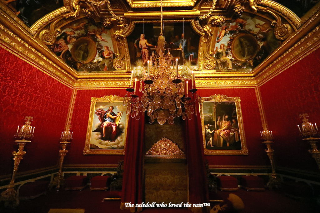 Until 1689 Louis XIV’s famous silver throne (a huge wooden armchair 2.6m tall and covered with silver plaques and sculptures) once stood here on a platform beneath a baldaquin. This extraordinary throne was melted down and replaced by a succession of gilded chairs in styles that varied according to the period.
