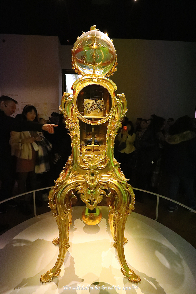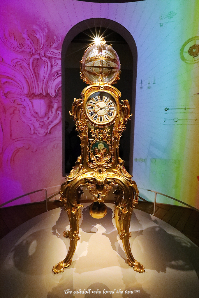 Icon of the reign but also of the personal passions of Louis XV, the clock is the fruit of considerable and stubborn work. The engineer Passemant devoted 20 years to the calculations of the moving sphere: 12 for its design and the establishment of the astronomical tables until 9999, and 8 to work on it. The watchmaker Dauthiau spent 12 years combining and executing the movement, and the bronze maker Caffiéri 3 years designing and creating the gilded bronze cabinet, a masterpiece of rocaille art, according to the design chosen by the king. The mechanism was examined and approved by the Royal Academy of Sciences on August 23, 1749, and acquired by the king the following year.