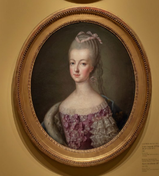 Louis of France married Marie Antoinette on 16 May 1770. A year younger than he, she showed little interest in her husband, whom she considered shy and awkward. The portrait of the Archduchess of Austria, based on a work by François-Hubert Drouais, depicts her features shortly after she arrives at the French court. The painter presents the image of a young, beautiful, slender princess with regular features.