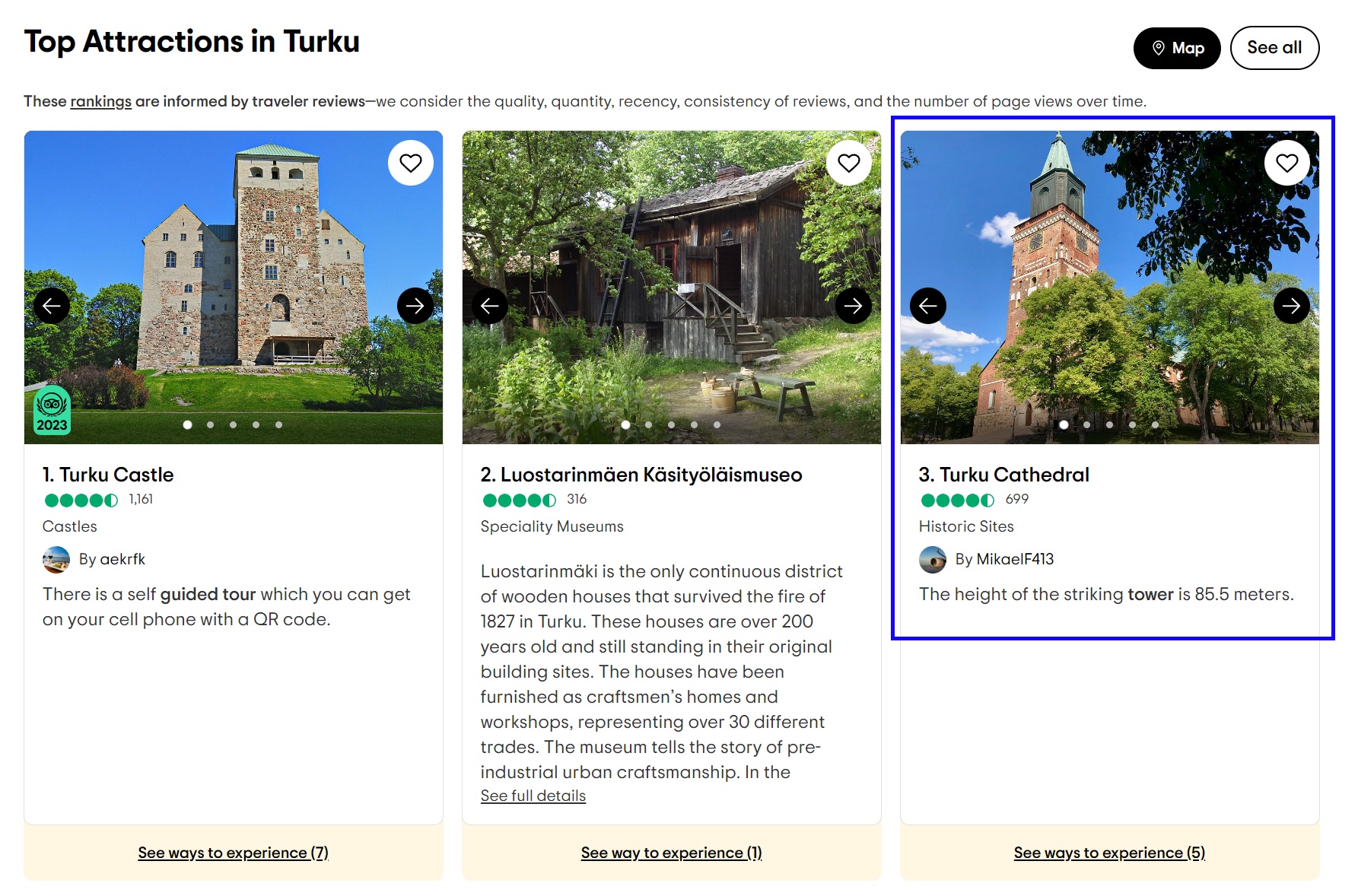When I arrived in Turku, I searched Tripadvisor, and Turku Cathedral was listed in the top three attractions.