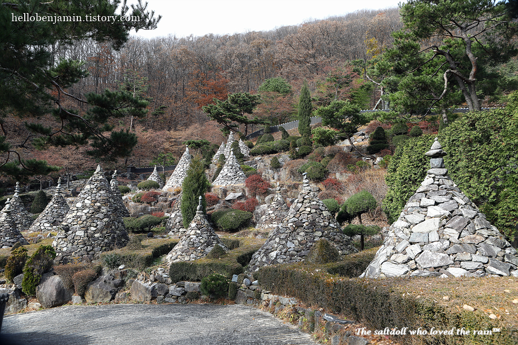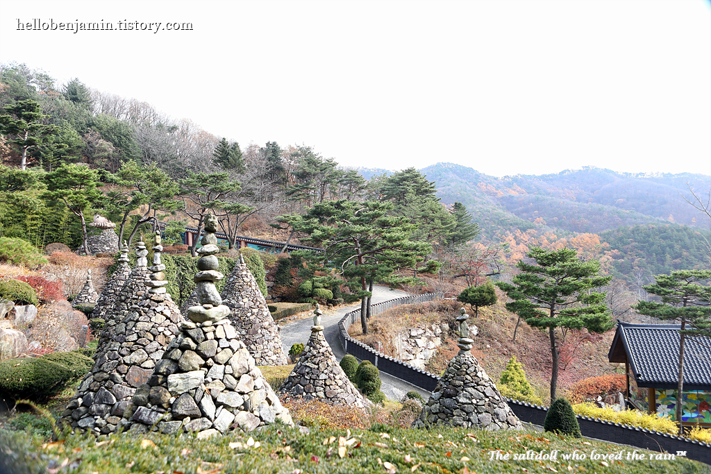 [이 석탑들은 한국의 통일을 염원하며 백두산과 히말라야 등 불교 성지에서 가져온 돌로 쌓은 탑입니다.]
