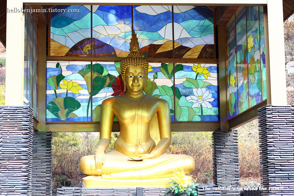[한국전쟁에서 전사한 태국 군인들을 기리기 위해 세워진 태국풍의 불상입니다.]