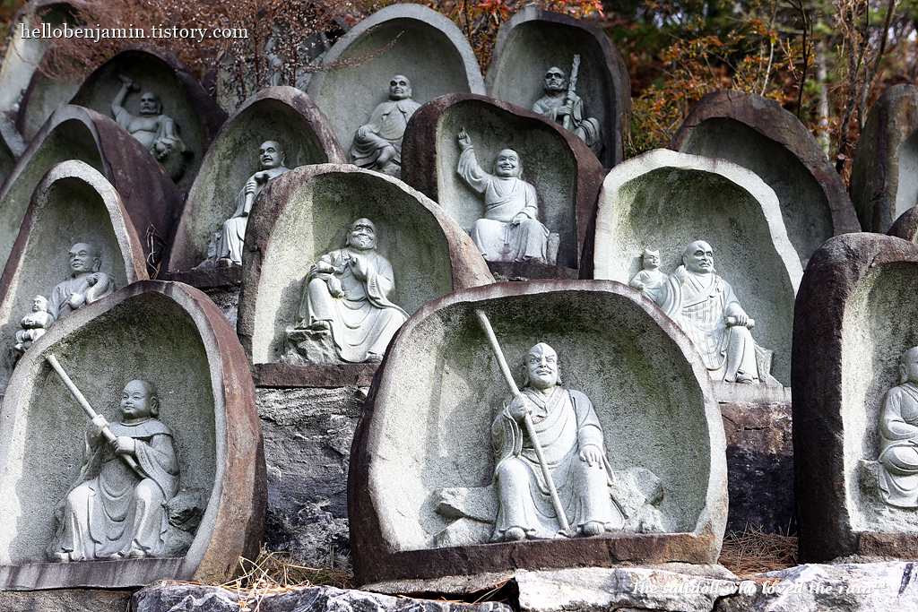 [500명의 나한상 모두 생김새와 표정이 모두 다르다는 것을 알 수 있습니다.]