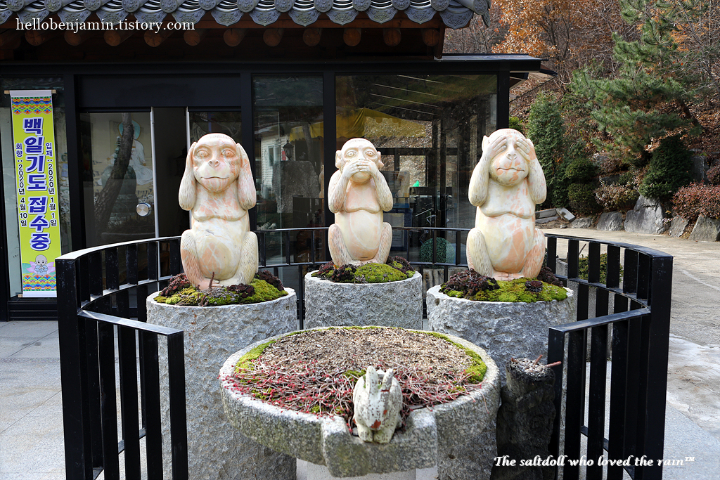 The "Sambulwon" is a sculpture that means don't speak bad words, don't see bad things, and don't hear bad sounds.
