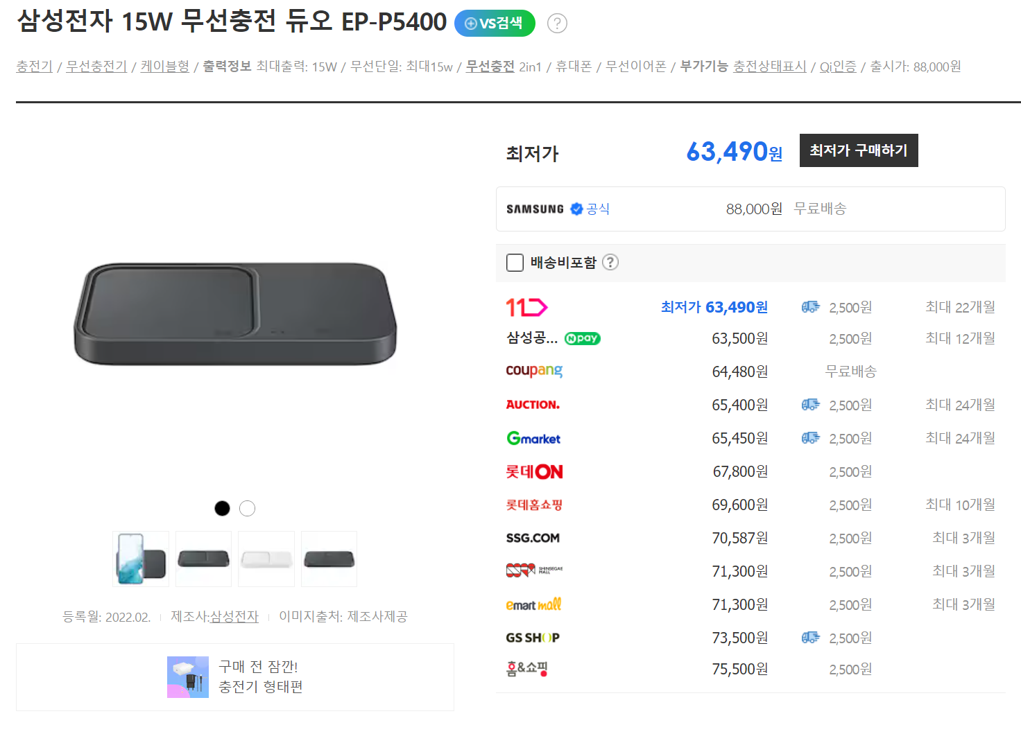 여담으로, SmartThings Station (EP-P9500T)도 15W Fast Wireless Charging 2를 지원하지만 고가이고 내 목적에 부합하지 않아서 제외했다.