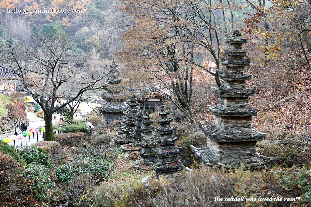 [이 석탑들은 한국의 통일을 염원하며 백두산과 히말라야 등 불교 성지에서 가져온 돌로 쌓은 탑입니다.]